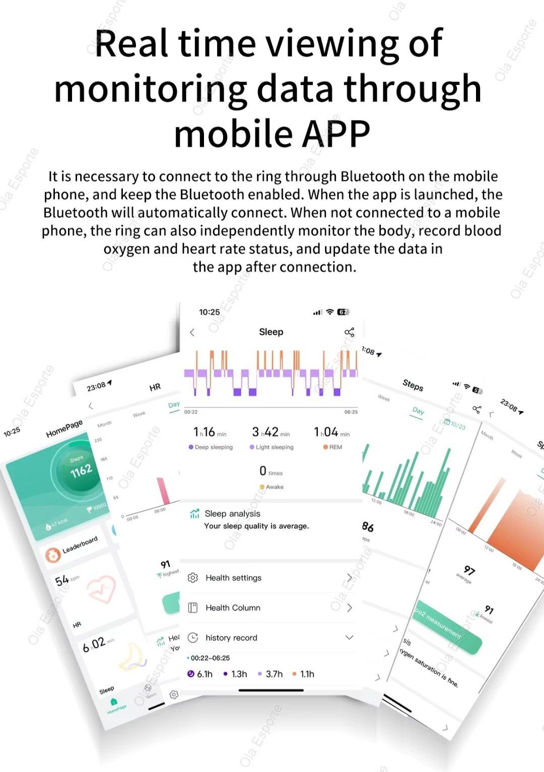 ★ 【Smart Ring: Free Health Tracking App】 The smart ring health tracker data can be viewed for free on a mobile app without any subscription fees. The device supports Android 5.0 and iOS 10.0 and above.