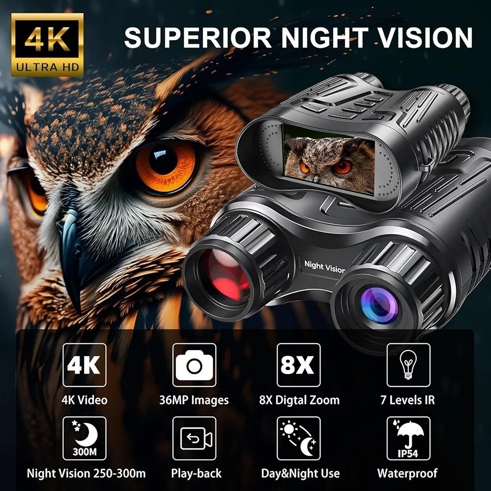 4K Digital Night Vision Goggles Binoculars, Rechargeable Night Vision Goggles with 3.2″ Large Screen, 8X Digital Zoom, 32GB Memory Card for Photo and Video Storage