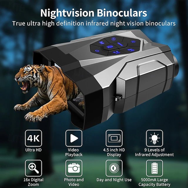 Experience the wild like never before with our advanced 4K Night Vision Binoculars, engineered for hunters, campers, and outdoor adventurers. Equipped with a 16X digital zoom and a powerful 45mm large lens, these binoculars deliver ultra-clear day and night vision, allowing you to spot targets at incredible distances with crystal precision.