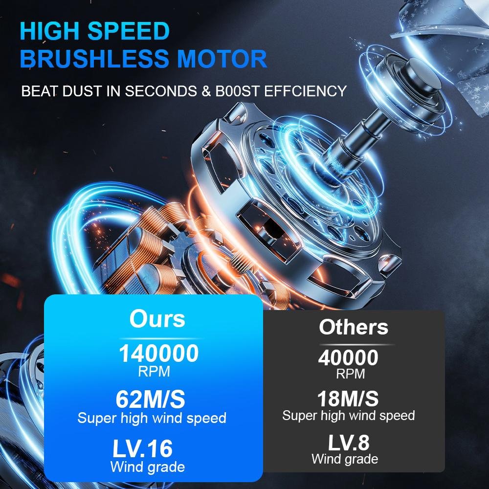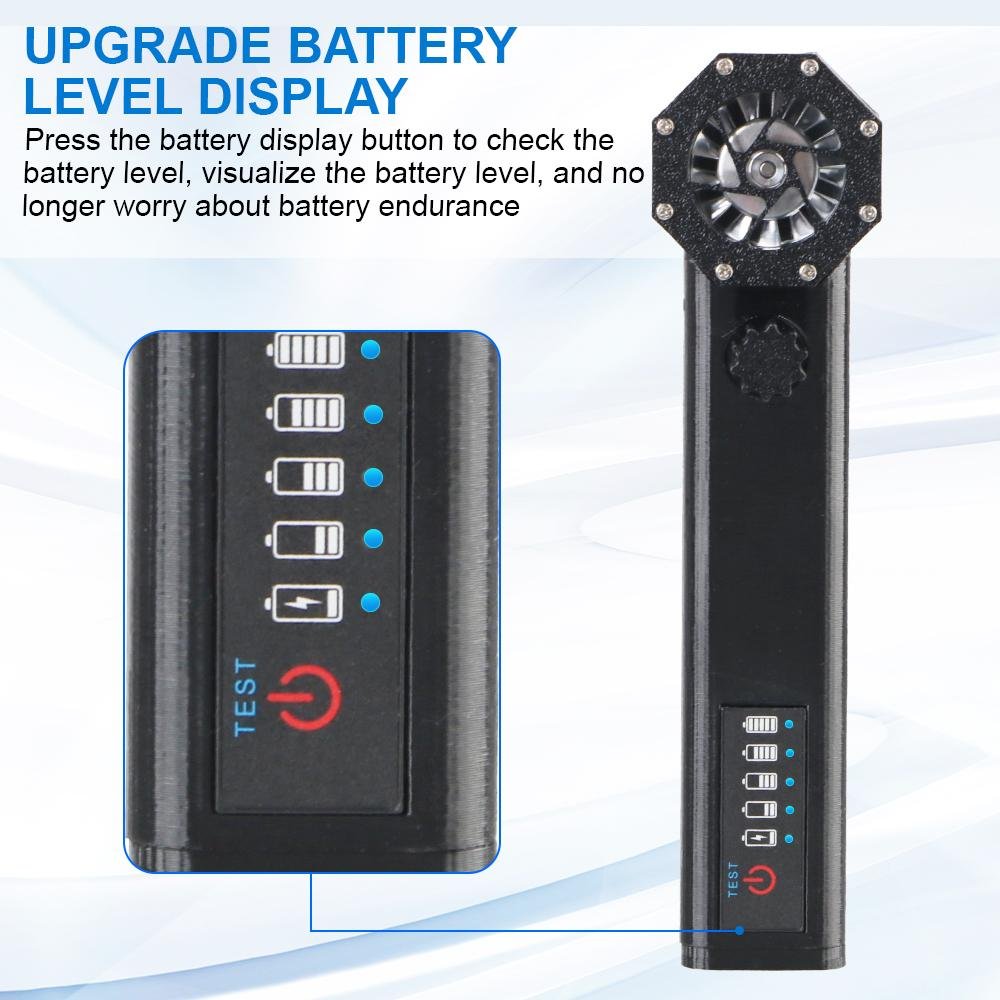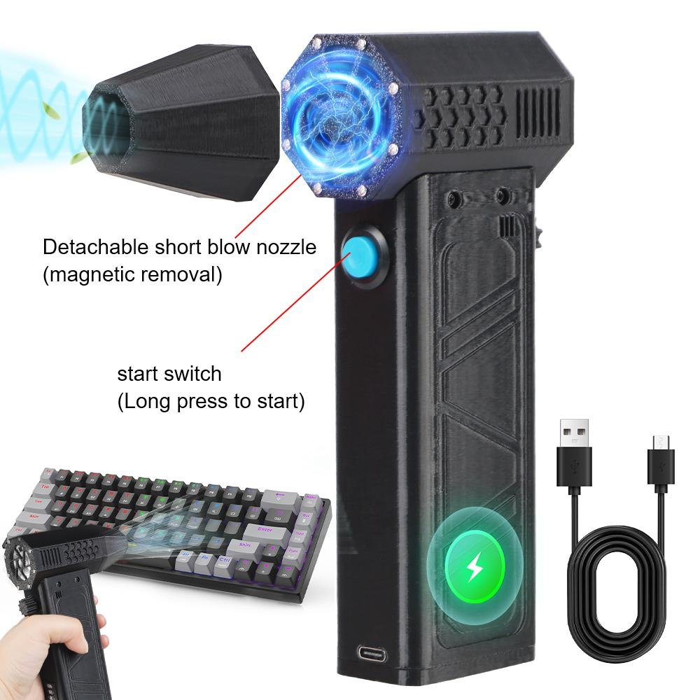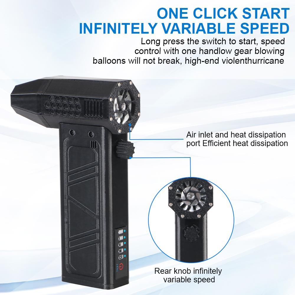 Easy to use operation:Knob stepless speed regulationThe user-friendly design of portable turbo fans ensures easy functionality. In addition, the charging board also has safe and reliable charging protection and overheating protection functions. The internal brushless motor can achieve high speeds of up to 140000 RPM (revolutions per minute).