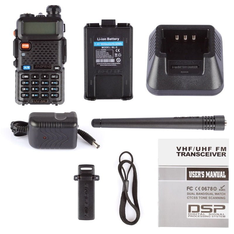 1x Baofeng UV-5R (136-174 MHz (VHF) 400-520 MHz (UHF) 128 Channels Handheld Radio