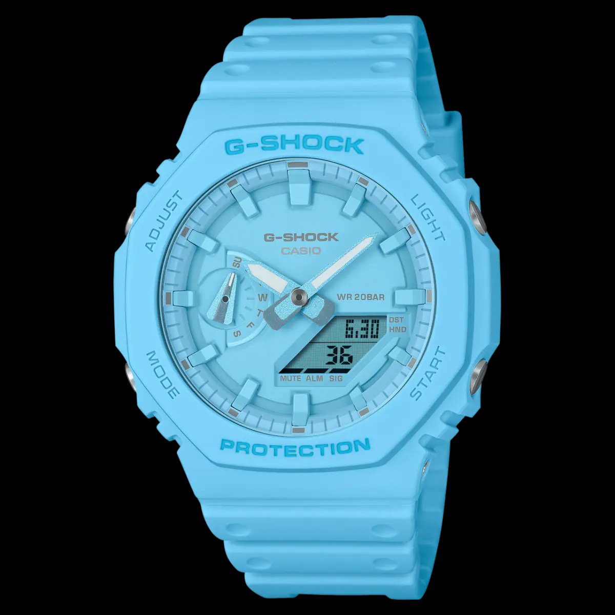 Smart Watches, Travel GadgetsCasio G Shock 2100 Series Round Analog+Digital Gold Ion Plated Bazel World Time Stop Watch Hourly Time Signal Full Auto Calender 5 Daily Alarm Double LED Light Multi-Functions Black Resin Band Watch