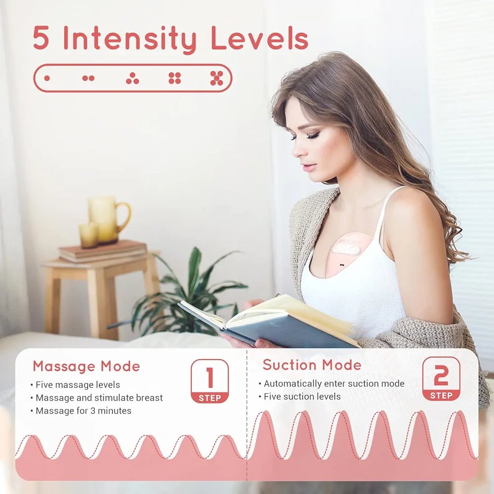 Highly Effective Breast Pump:Chefhandy wearable breast pump has 2 modes and 5 levels. Manufactory’s suggestion for mode selection, massage first and then pump, imitating the baby’s actual sucking frequency and optimize milk production. Make sure every mother enjoys lactation massager and breastfeeding free time and produces more milk in less time. The red indicator is massage mode, and the green is suction mode.