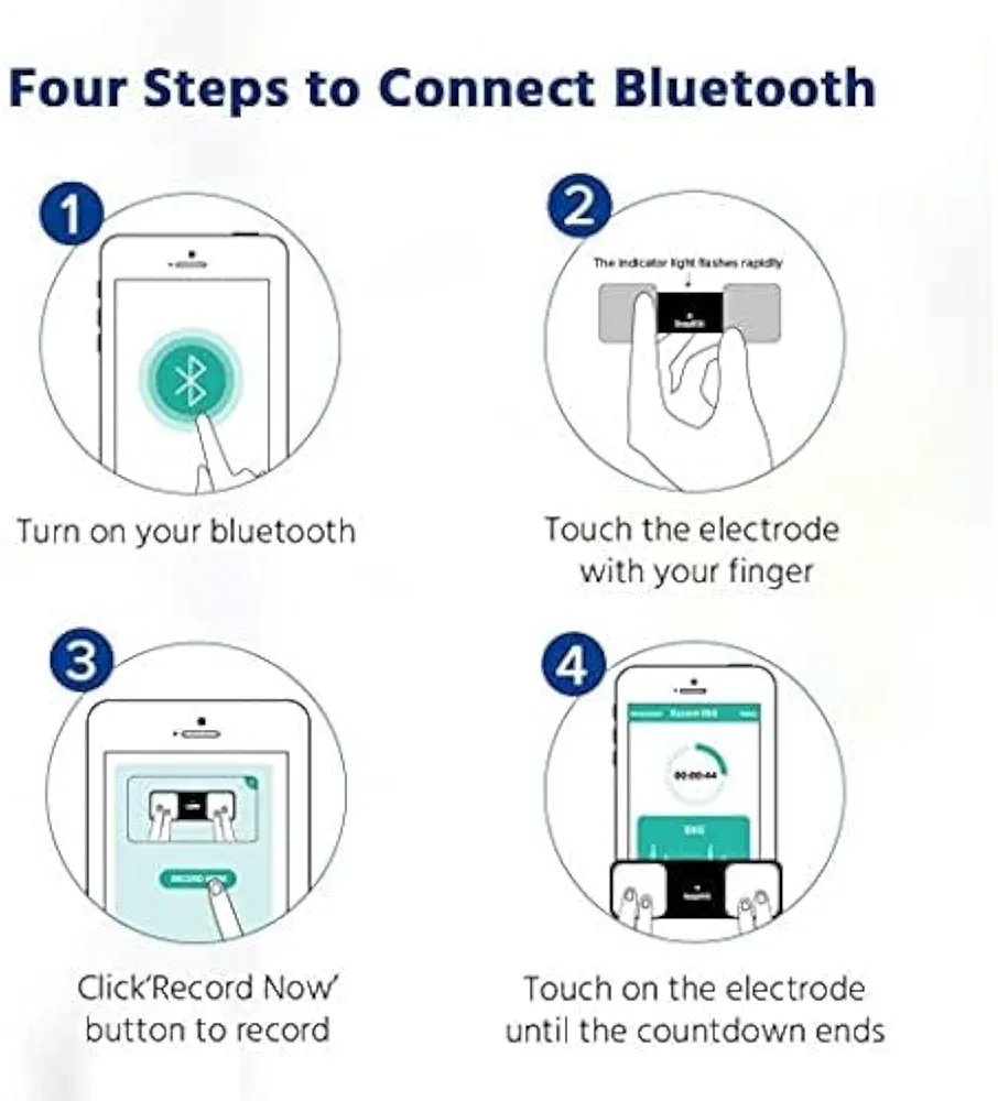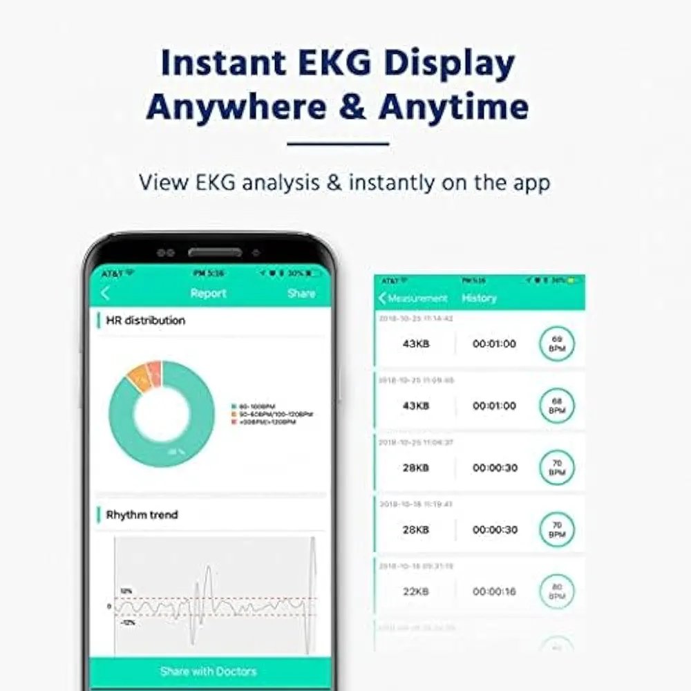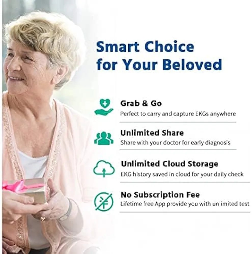 【Handy monitoring for heart】captures a medical-grade EKG in 30 seconds anywhere, anytime. Helping you finding potential heart issue earlier. No additional ECG electrodes and other consumables nedded