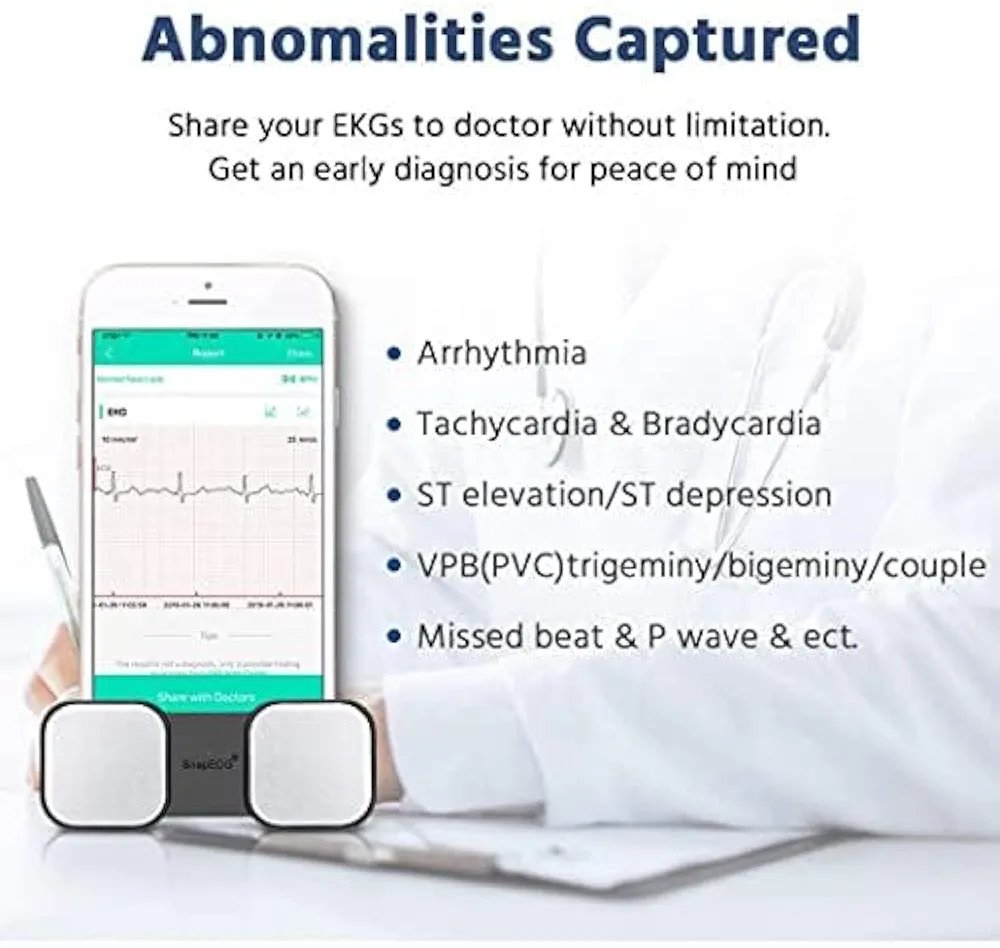 ECG Monitor, Handheld ECG Heart Rate Monitors for Smart Phone, Wireless Heart Rhythm Tracking Without ECG Electrodes Required, Home Use SnapECG Portable EKG Devices for iPhone & Android