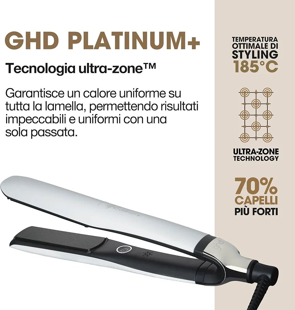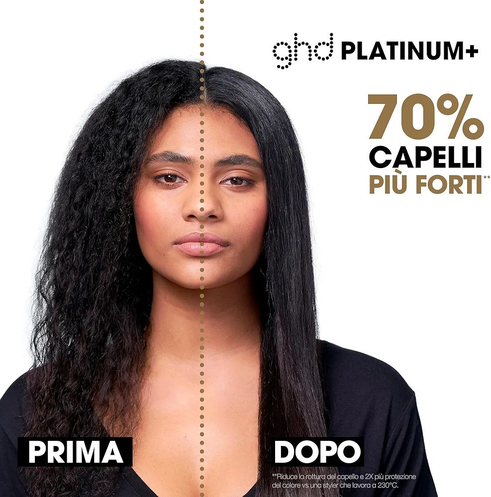 STRONGER, HEALTHIER HAIR: Designed to protect the integrity of your hair, the ghd platinum+ delivers 70% stronger hair, 75% more shine, and 2x more color protection—all while maintaining the optimum 185°C styling temperature.