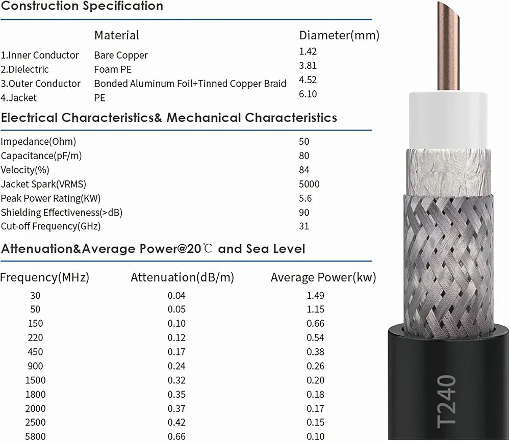PACK: Antennas with N type connector. 2 x low-loss coaxial cables with 10 m N-SMA connectors, 2 x SMA TS9 adapters, set of 2 mast mounting kits