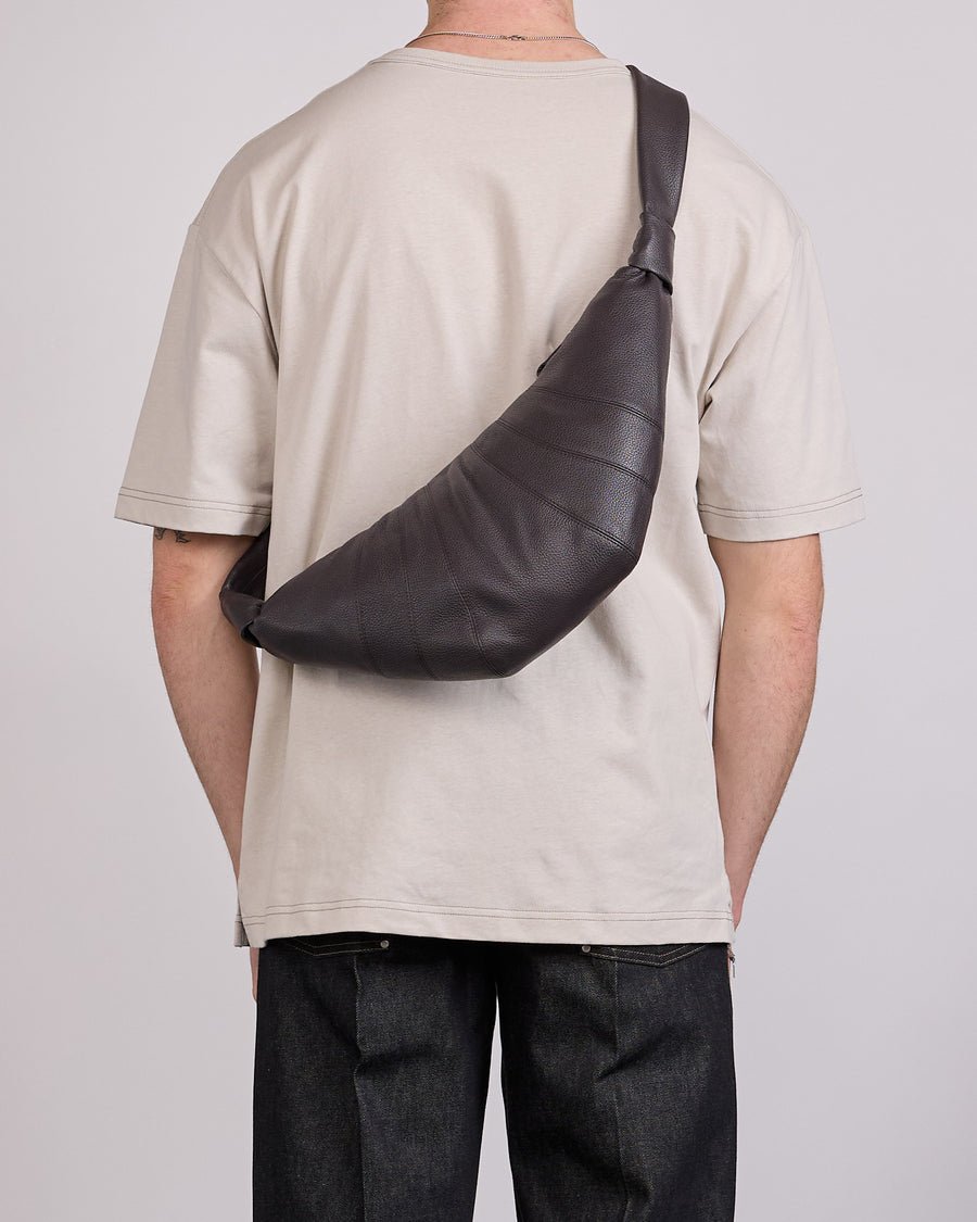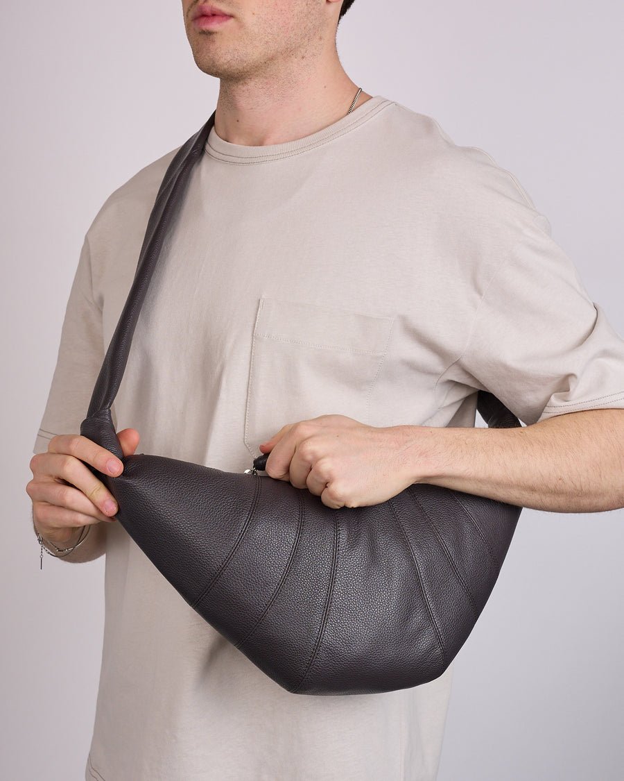 An emblematic piece of the LEMAIRE wardrobe, the LEMAIRE Croissant Bag Medium Soft Grain Leather is defined by its sculptural curve inspired by the Viennoiserie of the same name. This medium bag is crafted in grained leather, a supple yet resistant material characterized by its textured look.