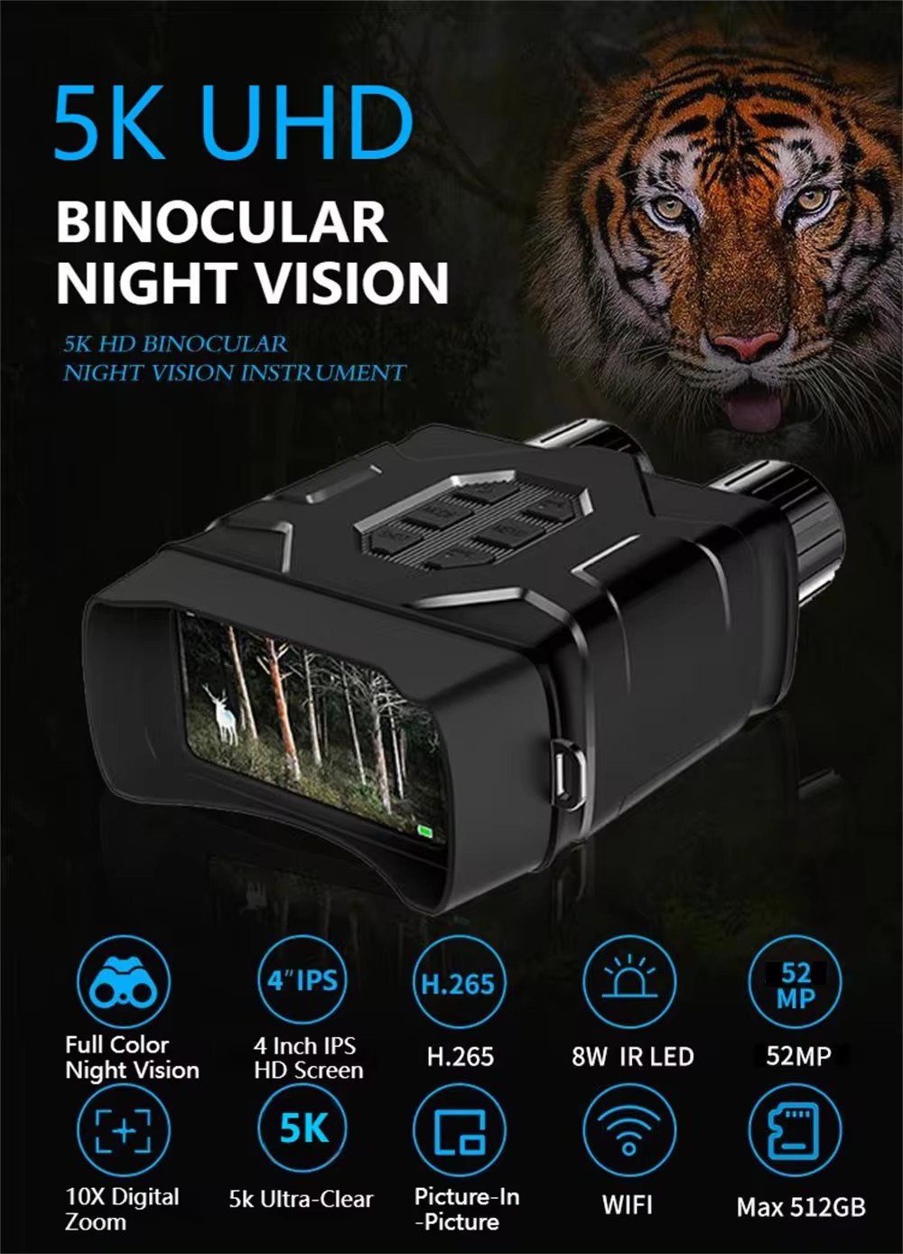 Application scenarios: hunting, reconnaissance, security and surveillance, camping fun, exploring caves, night fishing and boating, wildlife observation and photography, etc