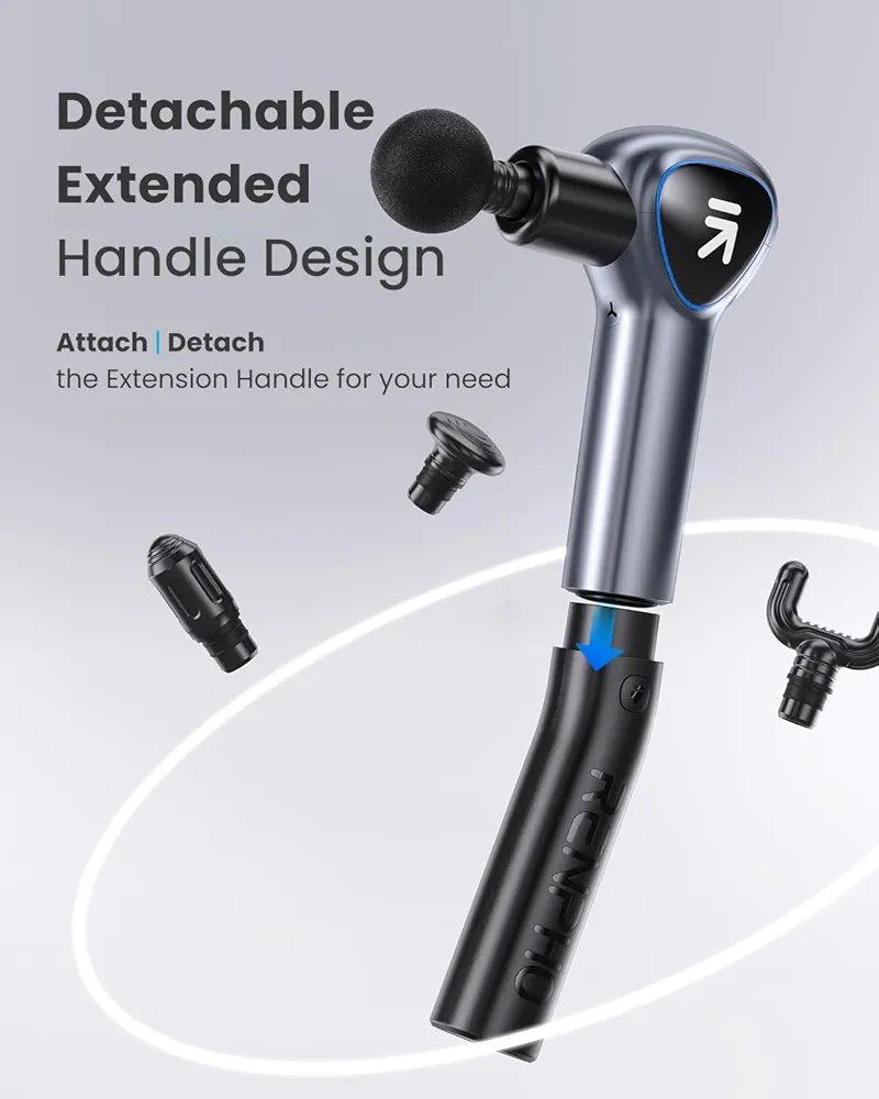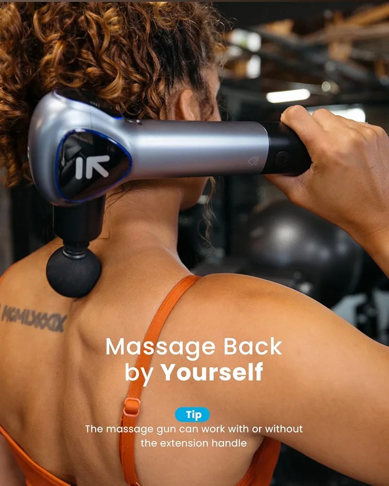 Detachable Extension Handle: Ergonomic Design Non-slip handle massage Gun can effortlessly target your back and other hard-to-reach areas for a relaxing massage by yourself than a usual massage gun