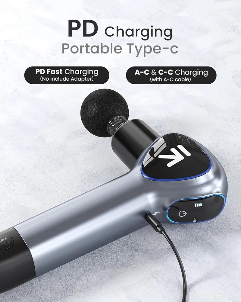 LED Touch Screen& Auto Mode: LED screen display the battery and Speed level. 4 Massage Heads and 5 Speed Levels to suit your all needs. Customize your massage experience further with Auto mode, which cycles rapidly up and down based on the applied pressure