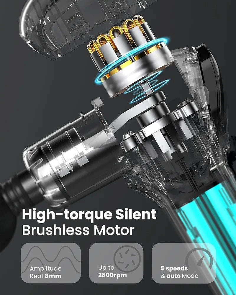 Powerful Percussion Massage Gun: We are dedicated to offering a more exquisite and intense sports massage gun for back, RENPHO Used the industry’s top silent brushless motor(<45dB), providing high penetration, 8mm massage depth to reduce muscle fatigue and enhance sleep