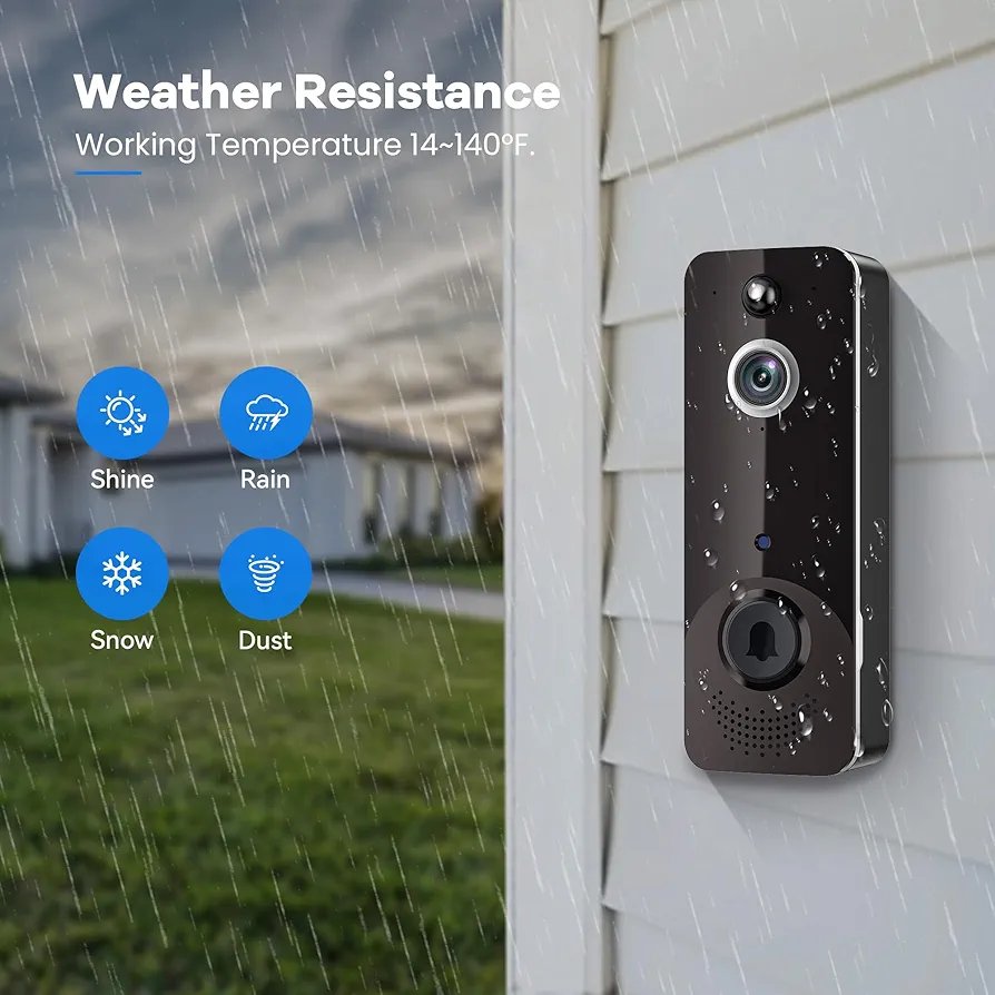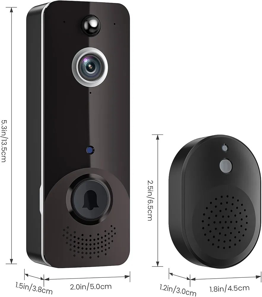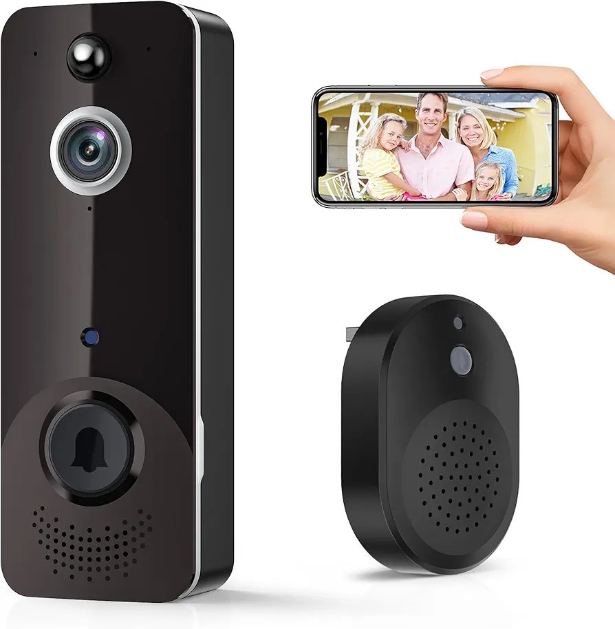 - [Easy Installation & Free Chime Included] Quickly and easily install the 100% wire-free doorbell camera with adhesive tape or screws. The package includes an free indoor chime that rings along with the outdoor doorbell camera.