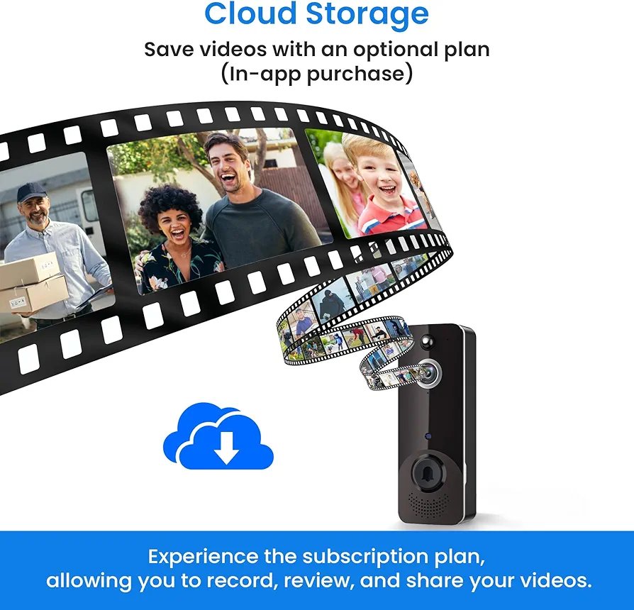 - [2.4 GHz Wi-Fi & Encrypted Cloud Storage] The doorbell camera is compatible with 2.4Ghz Wi-Fi, guaranteeing fast and reliable connectivity for seamless performance. Enjoy AES-128 encrypted cloud storage through an optional subscription plan (available for purchase separately). Take advantage of a 30-day free trial to explore the convenience of the subscription plan, which enables you to record, review, and share your videos securely.