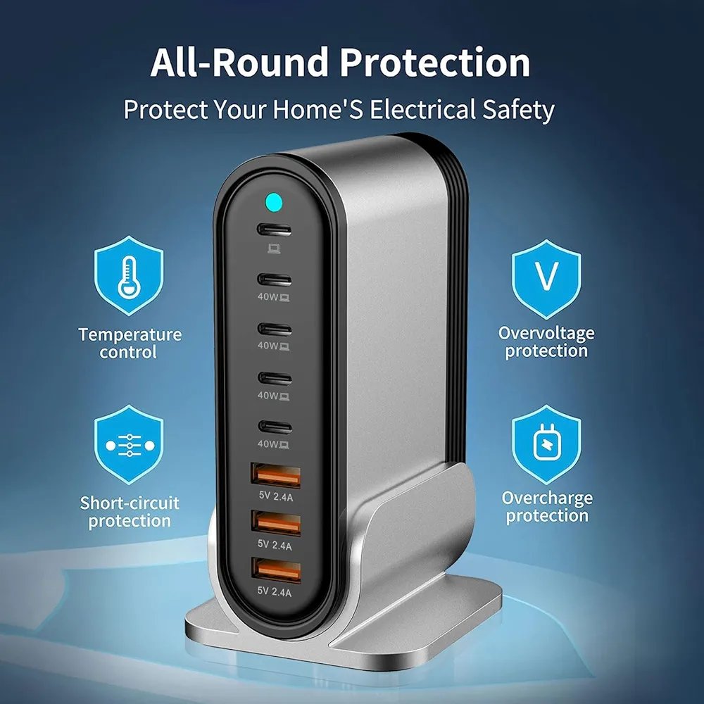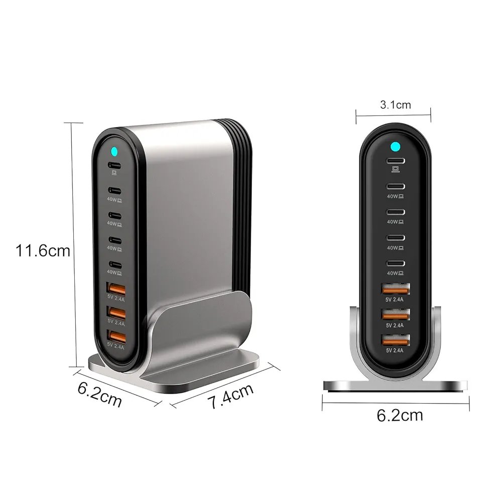 USB C Fast Charger : Fast Charging Station : 255W-8 Port Desktop Multiple Devices Power Adapter for Laptop MacBook Pro/Air, DELL, Tablet iPad Pro/Air, iPhone 16/15/14, Galaxy S23/22